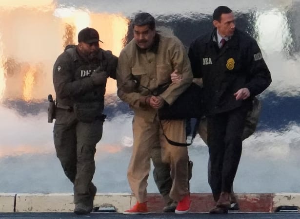 Maduro a bordo del buque USS Iwo Jima, rumbo a EE.UU, después de ser capturado está madrugada en Caracas por fuerzas estadounidenses.
