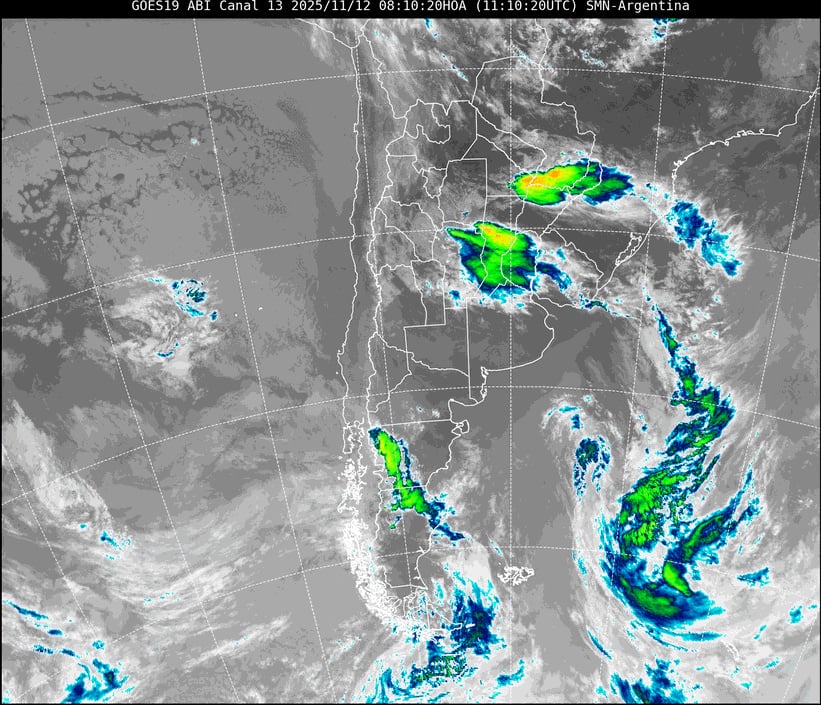 El ingreso de un sistema de baja presión desde el Pacífico ya provoca tormentas en el N de Patagonia. Con un avance rápido, formará una línea de tormentas que afectará la franja central entre la madrugada y la noche del martes, a medida que se desplace hacia el noreste de Argentina.