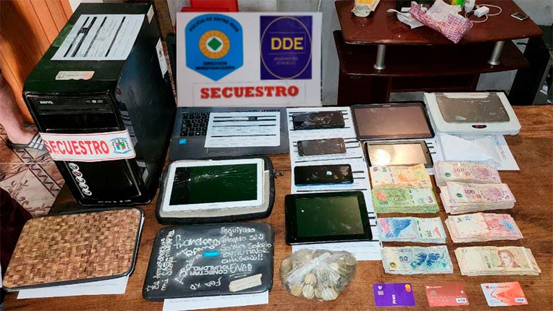 Tras el operativo, se produjeron nueve detenciones y se incautó material informático, teléfonos, dinero, estupefacientes, documentación varia, tarjetas de crédito y débito.