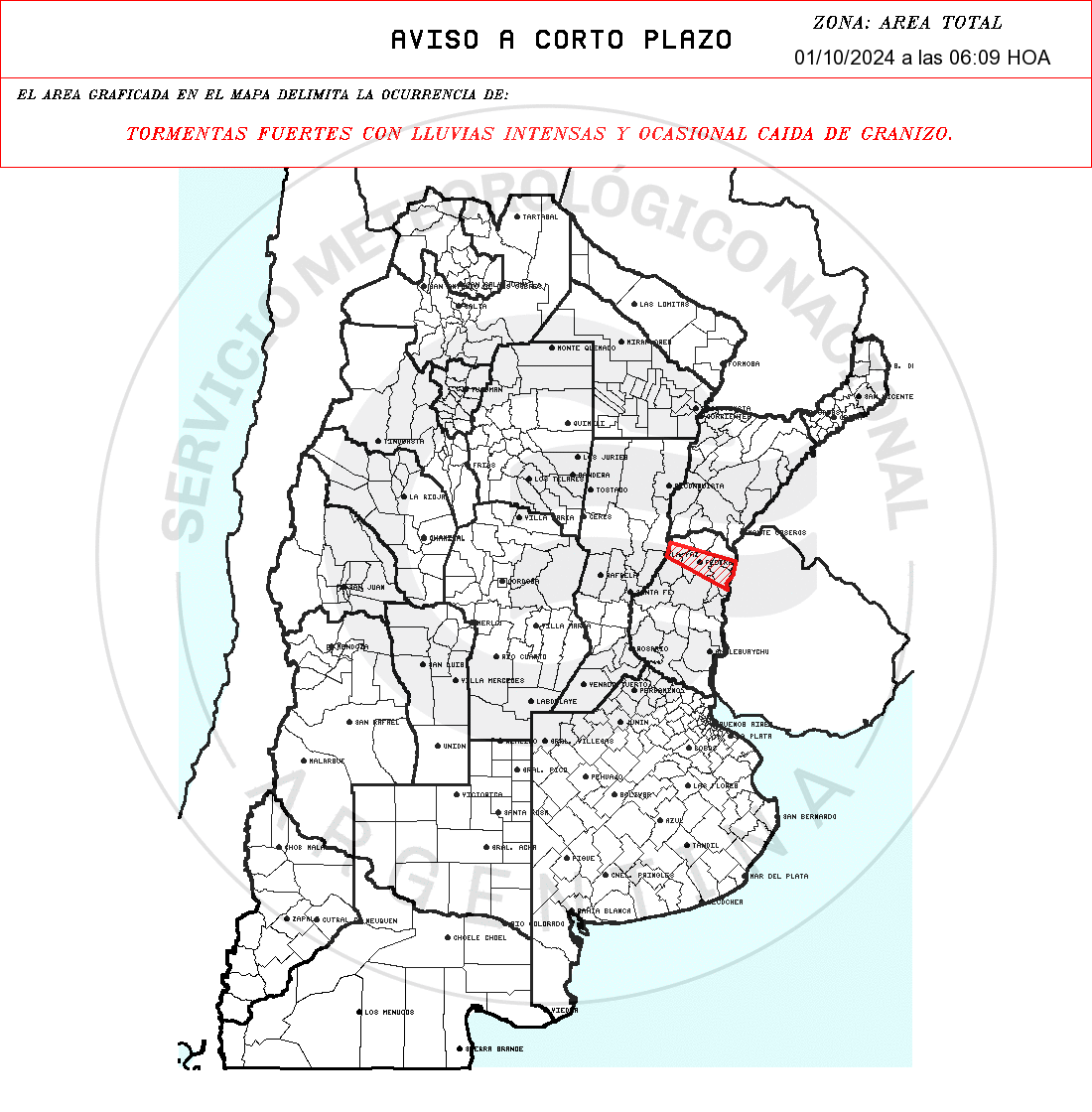 Los fenómenos indicados en el Aviso a Corto Plazo fueron detectados con radares meteorológicos del Servicio Meteorológico Nacional (SMN).