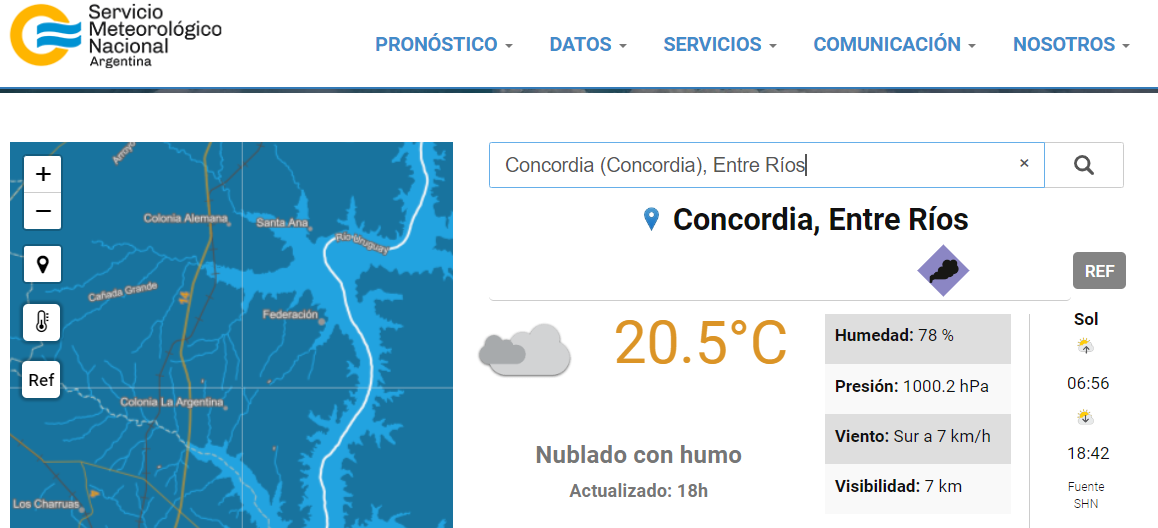 El tiempo en Concordia: amanecer fresco. A las 8 la temperatura: 5°C (3.9° ST). Se espera para hoy una máxima alrededor de los 18°C, dice el Servicio Meteorológico.