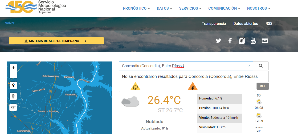 El nuevo parte del Servicio Meteorológico indica que el área será afectadas por tormentas, algunas localmente fuertes. Las mismas estarán acompañadas de intensas ráfagas, fuerte actividad eléctrica y abundante caída de agua en cortos períodos.
