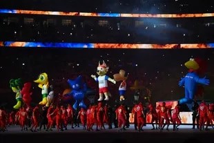 El “ejército” de espadas láser les dio la bienvenida a las banderas de los 32 países participantes. Arrancó con el “vamos vamos Argentina” del Mundial 78 y la siguieron el resto de los himnos mundialistas, en un popurrí de canciones.