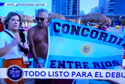 Lectora de Casa Tomada, comparte captura de imagen de esta mañana, de una señal de cable de Buenos Aires, que está con móvil en Qatar. Se trata de concordienses en Doha.