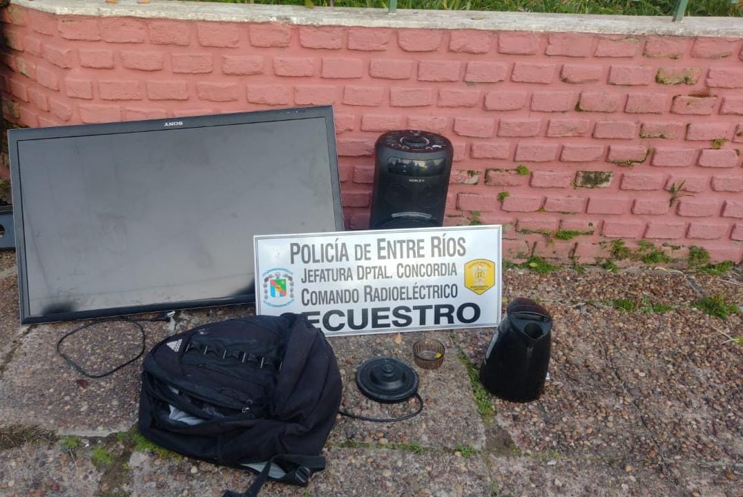 Hoy miércoles siendo las 06:20 horas, personal de la sección motorizada, observa caminando por calles Brown y Andrade, a dos personas de sexo masculino transportando un televisor marca Sony, un parlante Noblex, una pava eléctrica Philips y una mochila marca Adidas. Los hechos.