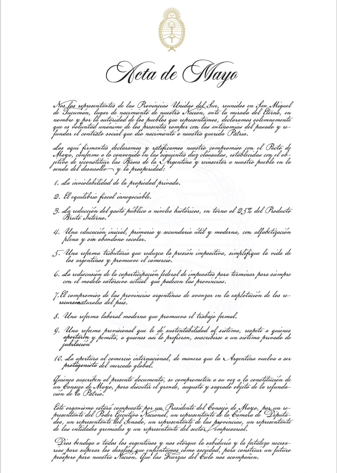 Casa Tomada pudo saber que Rogelio Frigerio, en el Acta de Mayo a firmarse este 9 de Julio, que llama a un Consejo de Mayo, al suscribirlo será todo materia de diálogo entre el poder ejecutivo nacional y las provincias, que además contarán con un representante del Poder Ejecutivo, junto a uno de la Cámara de Diputados, otro de la Cámara de Senadores, un representante de las provincias, un representante del gremialismo y un representante de la actividad empresarial.