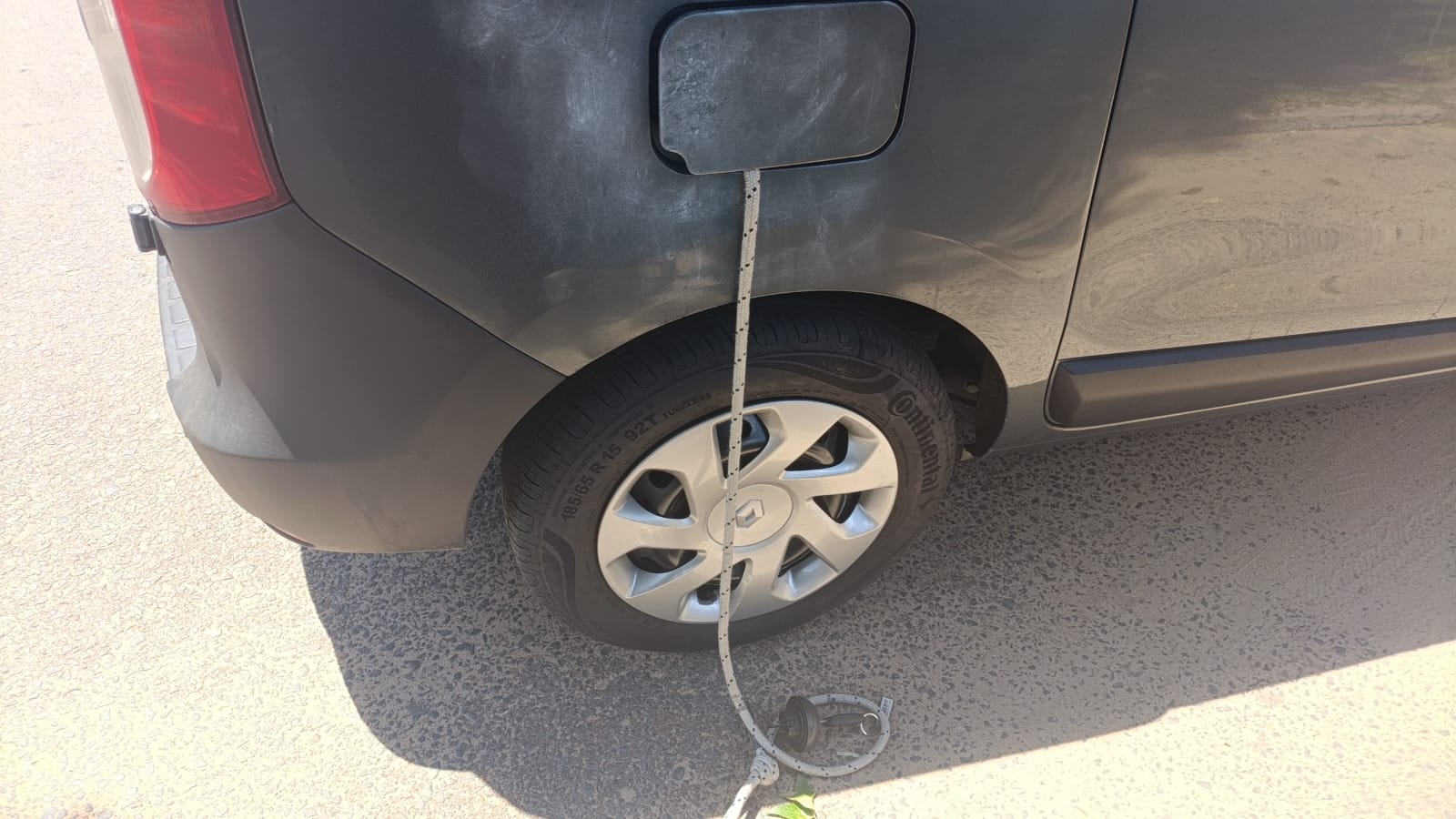 Imagen: cuerda a modo de mecha, del tanque de combustible de una camioneta Kangoo.