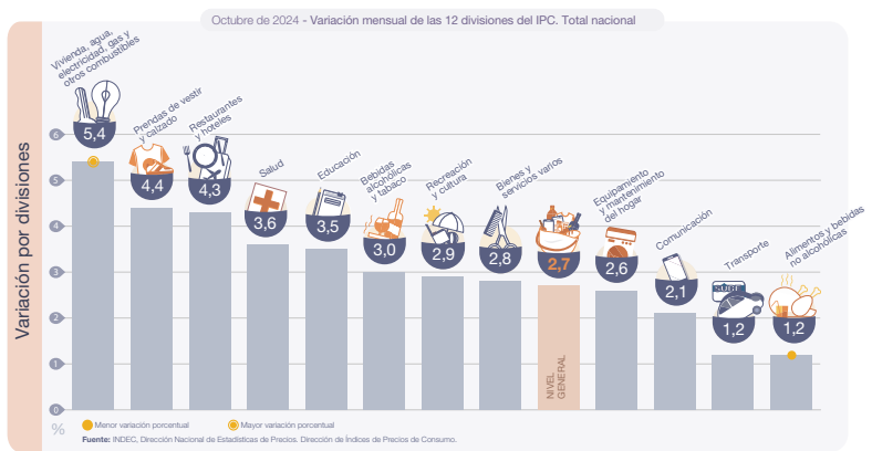 El Nivel general del Índice de precios al consumidor registró un alza mensual de 2,7% en octubre.